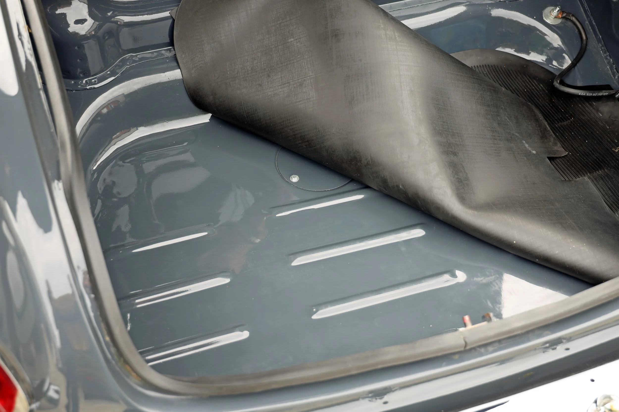 The boot matches the rest of the car in condition, with another Alfa Romeo-logoed rubber mat protecting a practically unmarked steel floor. By the look of the paint on the walls and rear bulkhead, it doesn’t look like the boot has been used to carry anything much since the car’s rebuild (and certainly nothing hard that could cause any damage if moving around). The battery, mounted on the right of the boot, has a quick release terminal so the Spider can be easily immobilised.