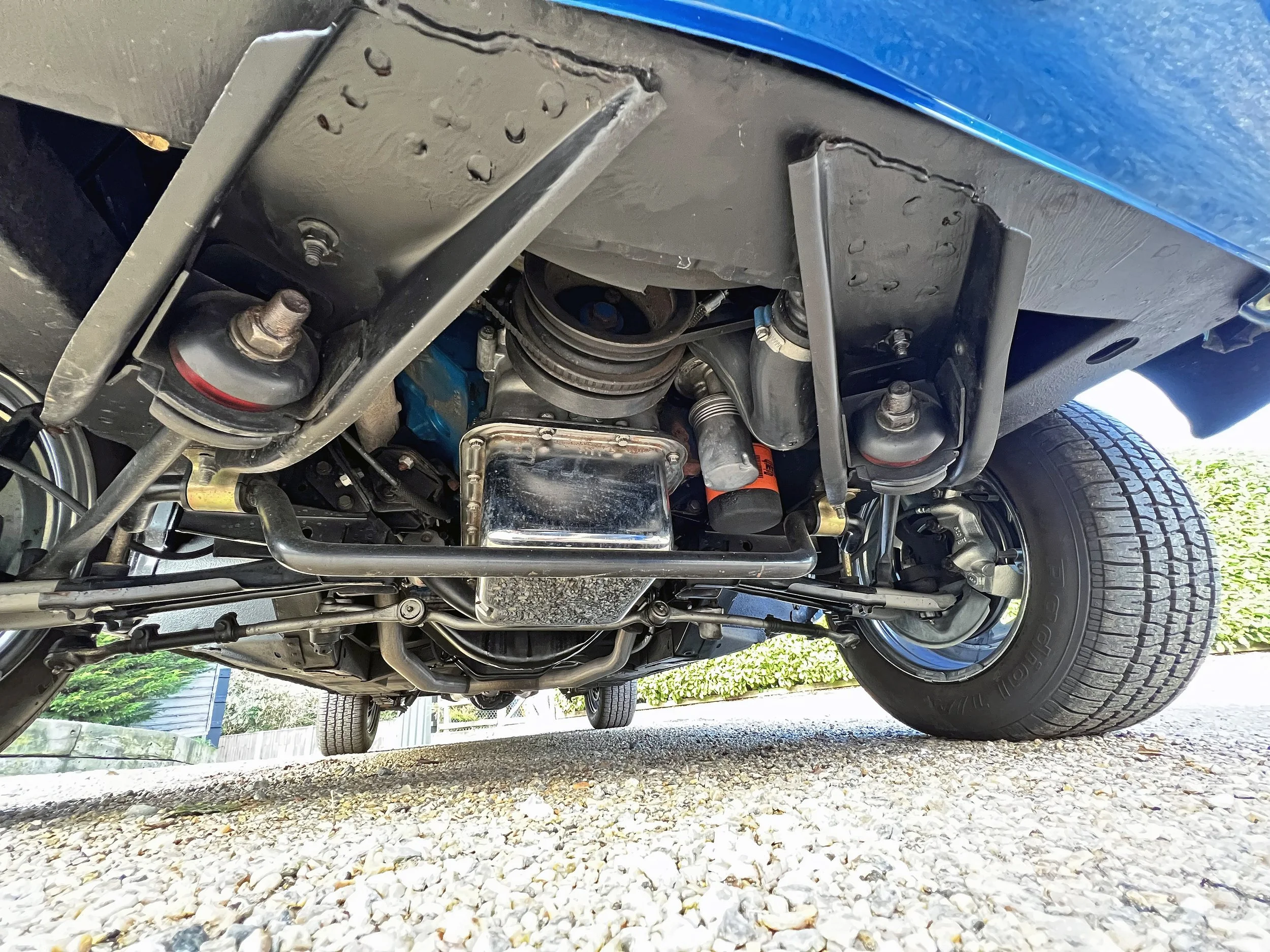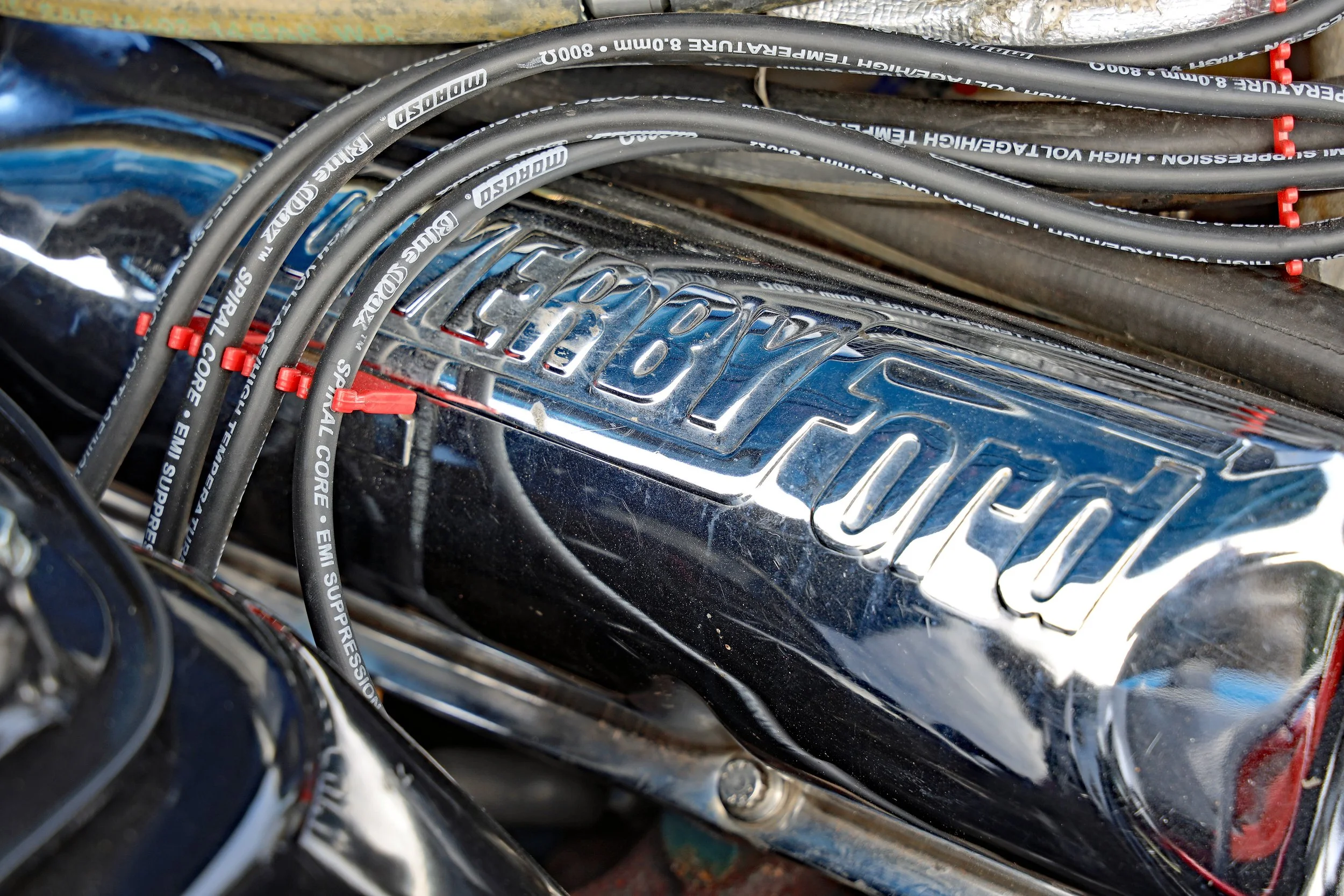 The engine bay is so well-detailed that it’s just begging to be shown off at events. So clean and tidy is it that even the majority of the nuts and bolts are free from any surface rust. There’s plenty of shiny chrome, such as the air cleaner top, oil filler cap and rocker covers. Upgrades include an MSD digital ignition plus Evans waterless engine coolant.