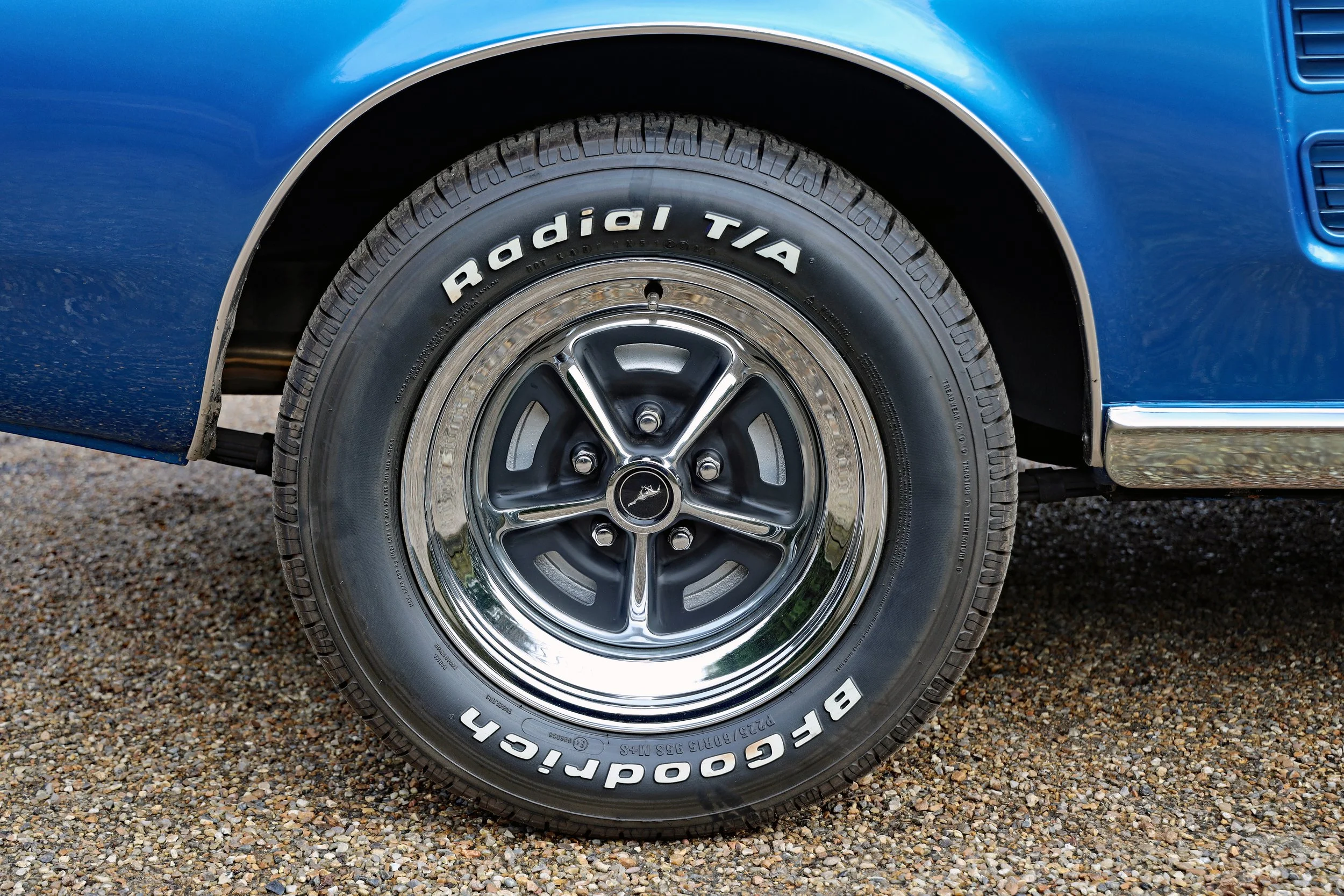 The bodywork is in pristine order, with its Brittany Blue shade consistent and free from any significant blemishes across the whole body. All the chrome and other brightwork remains sparkling and free from tarnishing while the wheels, clad in BF Goodrich Radial T/A tyres, bear no significant marks. Those tyres, incidentally, are date-stamped 2021, so have plenty of life left in them. While the grille has auxiliary lights set into it, the car comes with its original one without lamps, should the new owner wish to make the Mustang look a little more like a Bullitt star. Undersealing has been neatly carried out underneath, although items such as the sump are chromed – and that its mirrored surface is still so reflective speaks volumes about how carefully the car has been used. A stainless steel exhaust has been installed.