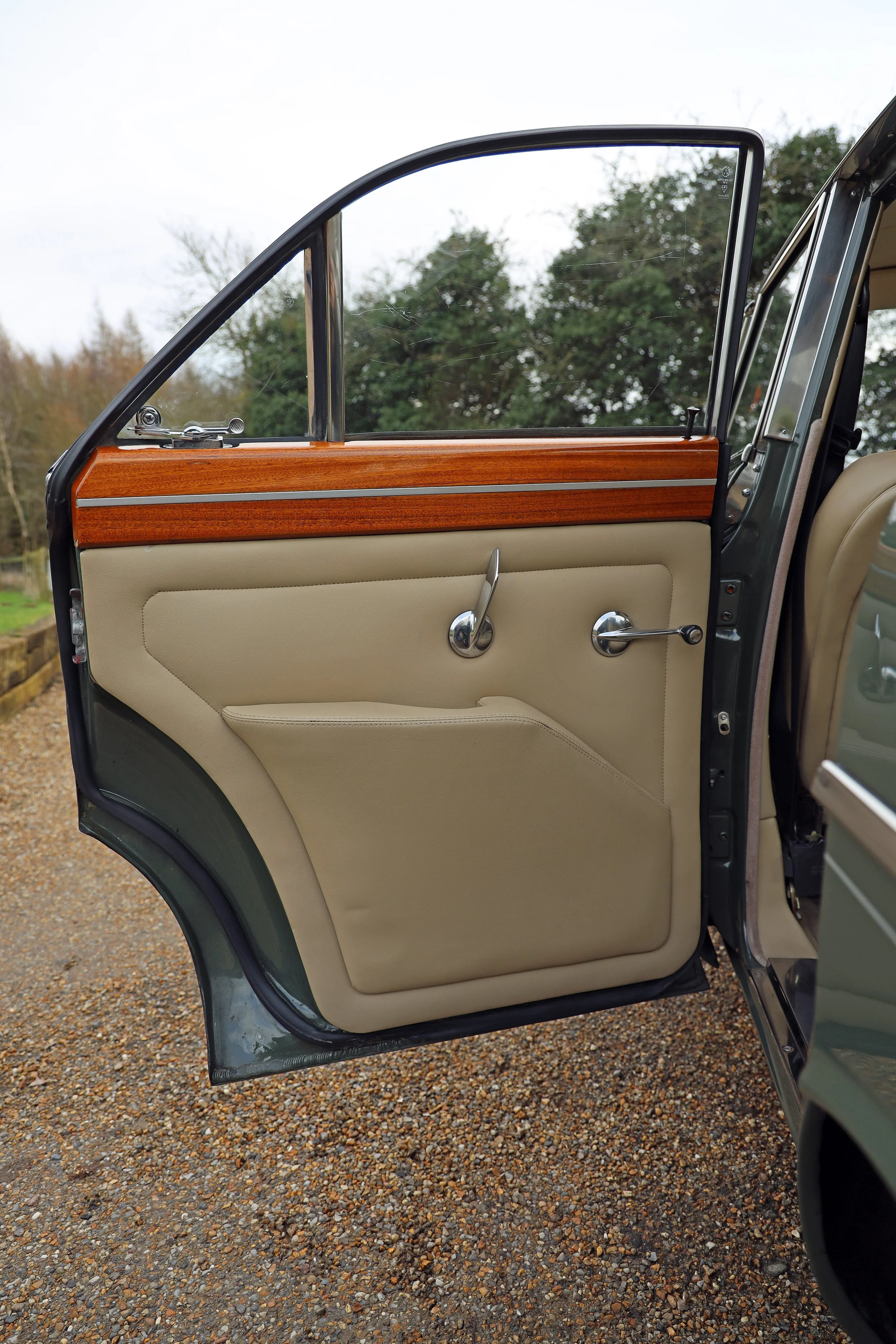 The body and paintwork are close to exemplary condition, with the duo-tone green and grey livery especially suiting the Rover’s very dignified lines. There are very few blemishes to be found anywhere on the shell and even the pinstriping underneath the main side trim is unbroken and shows no fading or unevenness.