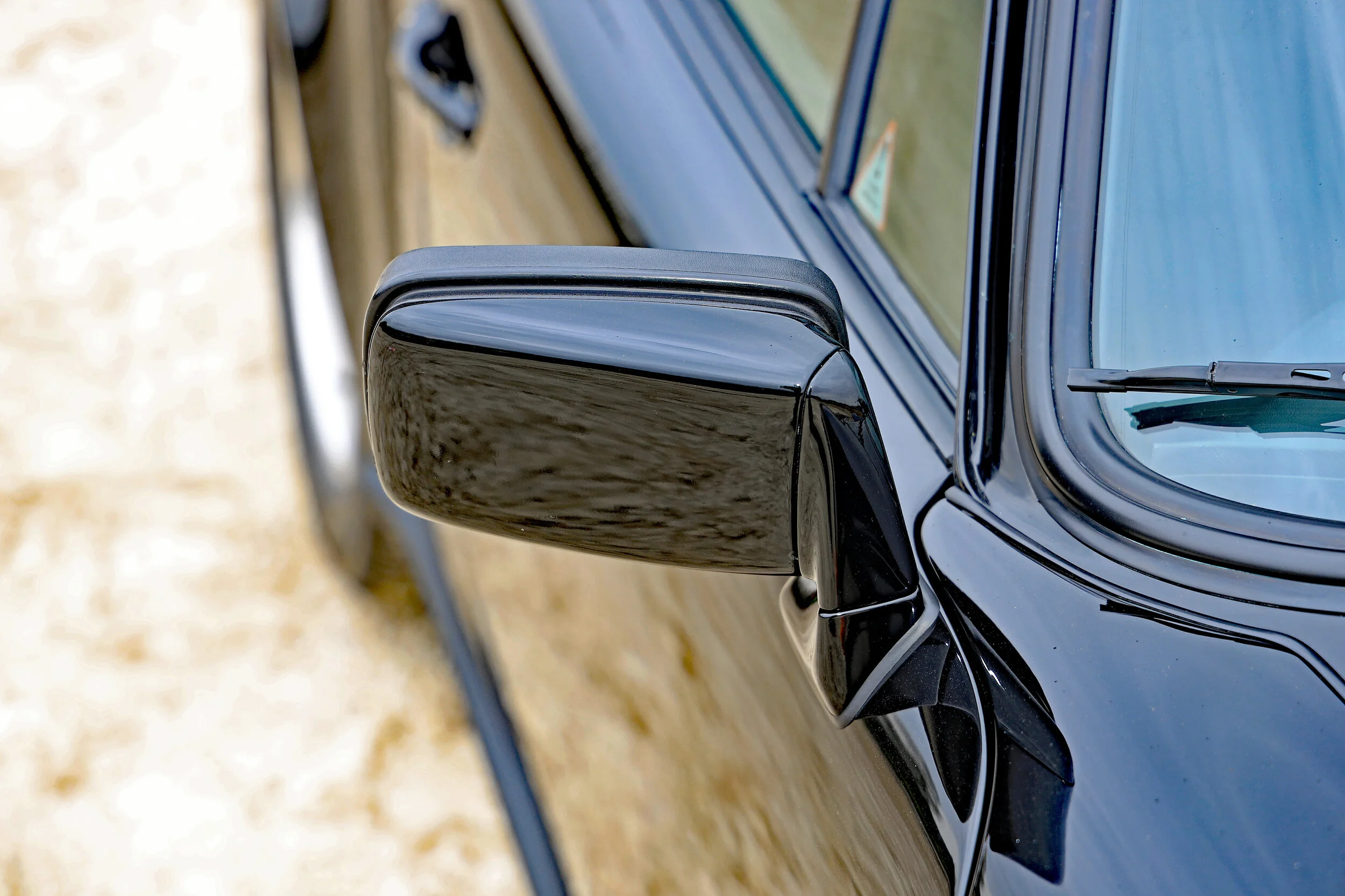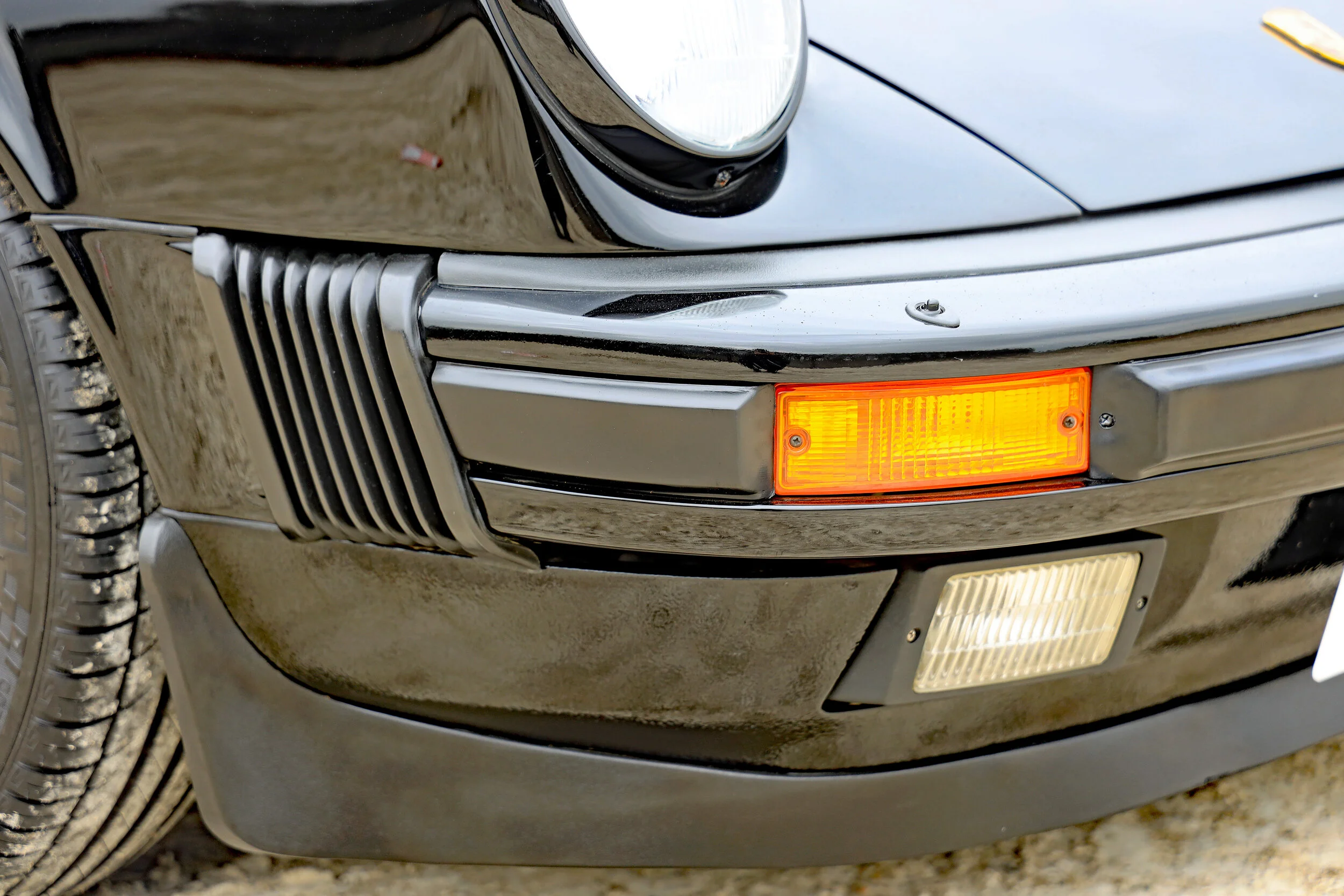 The only brightwork on this otherwise completely black machine is the wheel surrounds bordering the Fuchs five-spoke alloy centres. These are free from kerbing or any other issues. The glossy black Fuchs centres not only match the rest of the paintwork in hue, but they’re also spotless. Tyres are Michelin Pilot Exalto 205/55 ZR16 91Y items at the front, with the rear ones being the same brand and type, albeit 225/50 ZR16 92Ys. These sizes were an optional fitment for 911 3.2 Carreras in 1986. With the tyres date-stamped 2017, they’re in excellent nick, with plenty of tread left, and no damage to the sidewalls.