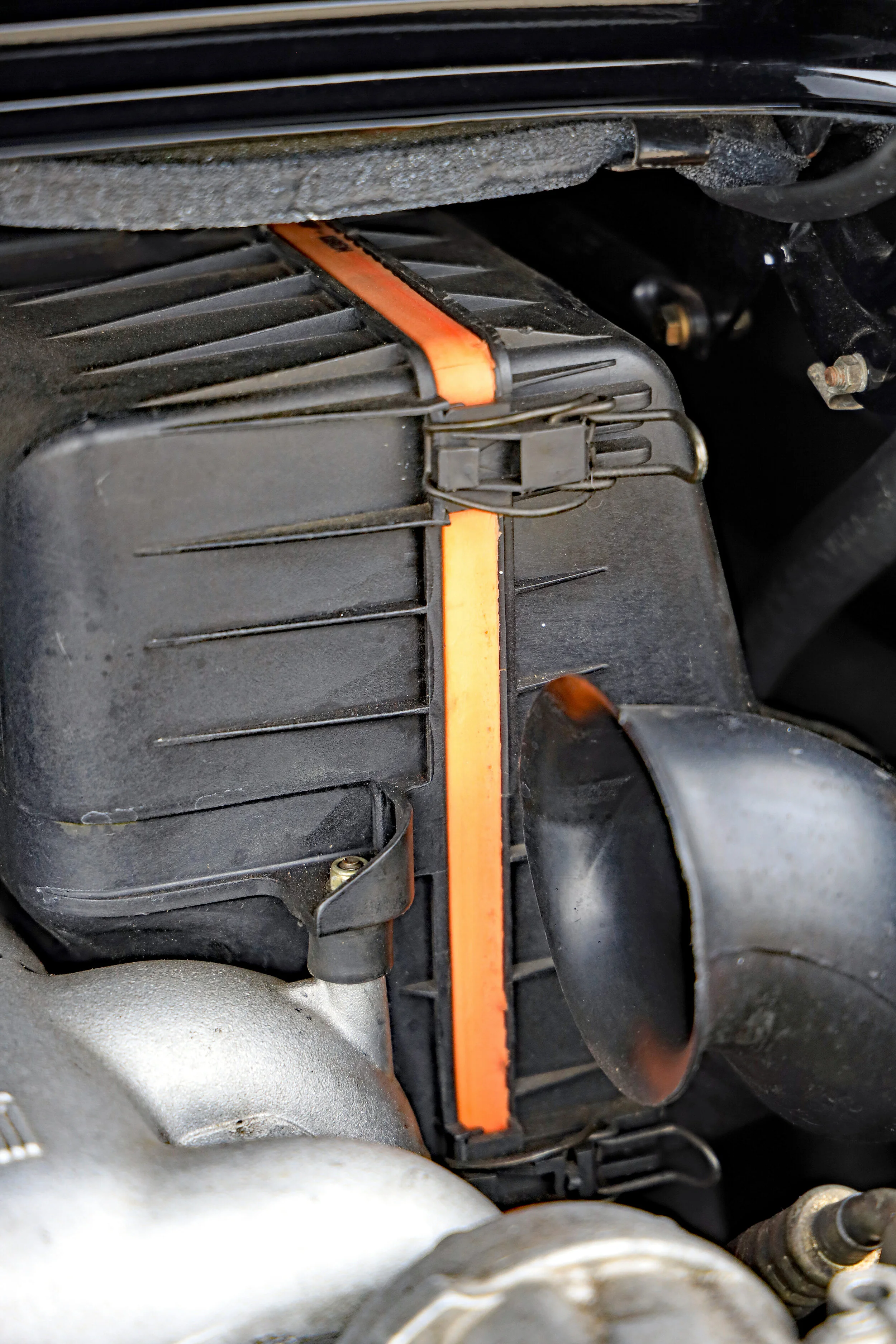 Having been steam-cleaned a few months ago, at 93,367 miles, the engine bay is still immaculate after less than 300 miles later. And it really is immaculate too; there’s hardly any oil, grease or grime to be found. Even the results of the recent service can be seen; aside from all the fluids being clean and at the right levels, the red oil filter is spotless, as is the orange air filter surround and the alternator belt. All the wiring and pipework is sound. For those who prize originality, the warning and information stickers on the slam panel are all in place, and look like they could have been applied yesterday.