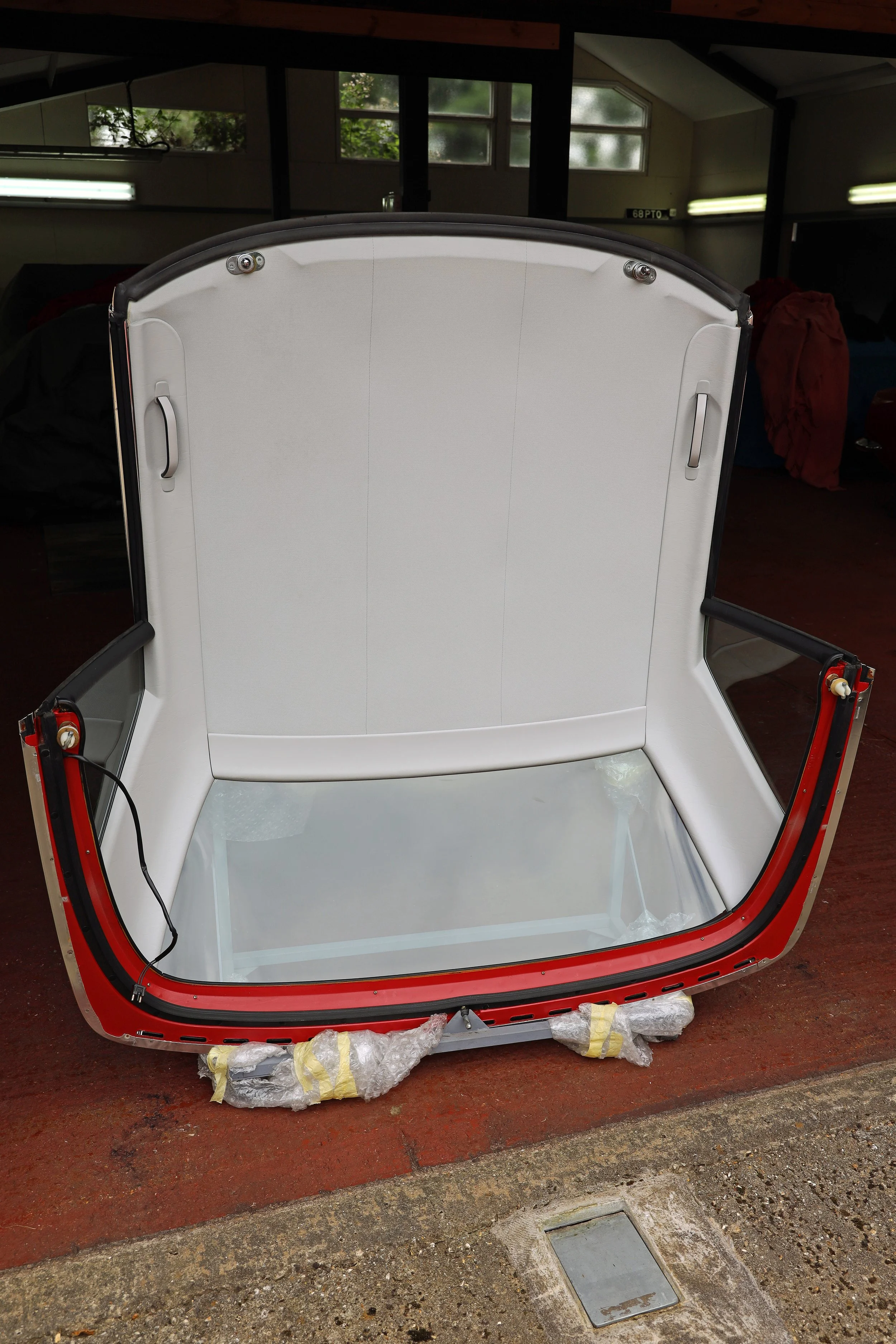 The manually-operated black hood can’t have seen that much use, if the car was only used on dry days. It’s still taut and well-fitting, with the black fabric as good as everywhere else on this car. The only marks are dust signs, from lack of operation, and there are no tears, fraying or areas of wear. All three plastic windows are clear with great visibility. The hard-top is similarly excellent.